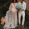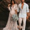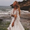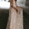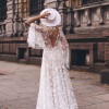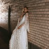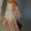 This unique bohemian wedding dress by Boom Blush is a true stunner. The lace is made of stars, embroidered with white beads and silver sequins. The dress is unique and airy and it is a perfect choice for a boho or traditional romantic wedding on the beach. It also glows and sparkles in the evening light.