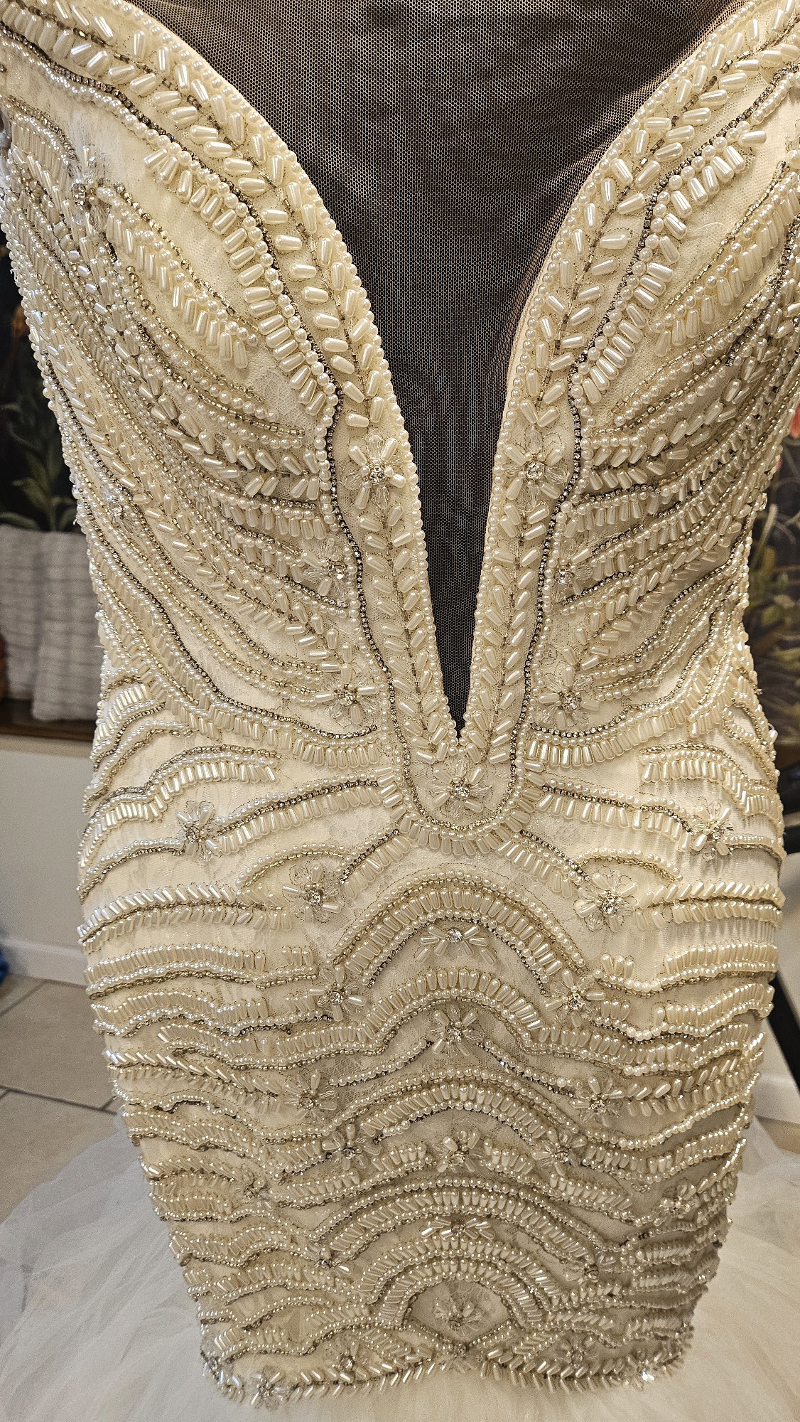 With its unique detailing and luxurious fabric, this US size 4 wedding dress (street size:2) will leave a lasting impression on your guests and create cherished memories for years to come. Embrace your inner goddess and walk into your happily ever after in this breathtaking creation.