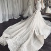 The train on the top skirt and dress is about 2.5 to 3 metres long. And the veil about 3 to 3.5 metres long. I am 164cm tall.