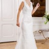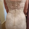 The dress has a silk slip dress that is zipped and has low back. There is then a stunning lace overlay dress that has beautiful beading detail on the back, buttons and a lovely train that is longer than the slip and so frames it beautifully.