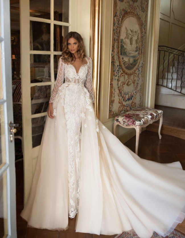 No deal better! More than 50% off! Has been well kept/stored. Sold mostly in Europe. Rare. Comes with the de-tachable train which is ivory in color with the white flowers to match the dress! Dress is a lace material and train is a chiffon. It is new and only tried on! It is an amazing dress. There is bling bling on the sleeves. Dress had no alterations done. It is a size 36 on the receipt. I am a size 0-2 in normal clothes. The bust, hips, waist measurement is what you will want to measure on yourself and look at my measurements. It's a Ukrainian dress and you will be sure to WOW all of your guests with this one!