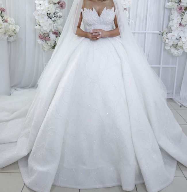 Selling my wedding dress custom made by Norma & Lili. Heavily detailed hand beaded dress with 3D pearls.