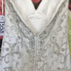 Ivory Venice Organza is artfully draped and layered into this luxurious fit and flare wedding dress featuring a decadent embroidered bodice encrusted with stunning Swarovski crystal and finished with a sweetheart neckline and plunged low back. The back is fastened with a zip and crystal buttons with an inner elastic corset.