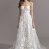 Ti Adora by Allison Webb bridal gown - Ivory/Cashmere lace and English net A-line gown. Sheer plunging sweetheart neckline and sheer back. This is a sample dress that has never been altered! Bought this for $1200 off the rack (retails for ~$1800 new) but then fell in love with another dress after. Please someone put this beauty to good use. Label size is 12 but can be altered down to anything. I am a street size 6 and was planning to alter it! Truly is a beautiful dress!