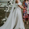 - I had the dress hemmed, the off the shoulder straps taken in slightly as they were quite large & the split tacked open to assist me in getting that beautiful leg through the split shot