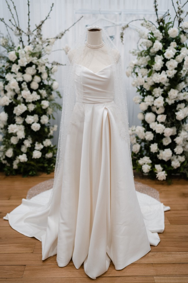 Buttons down the back of the dress allowing you to hook the dress train to the button to hold it up.