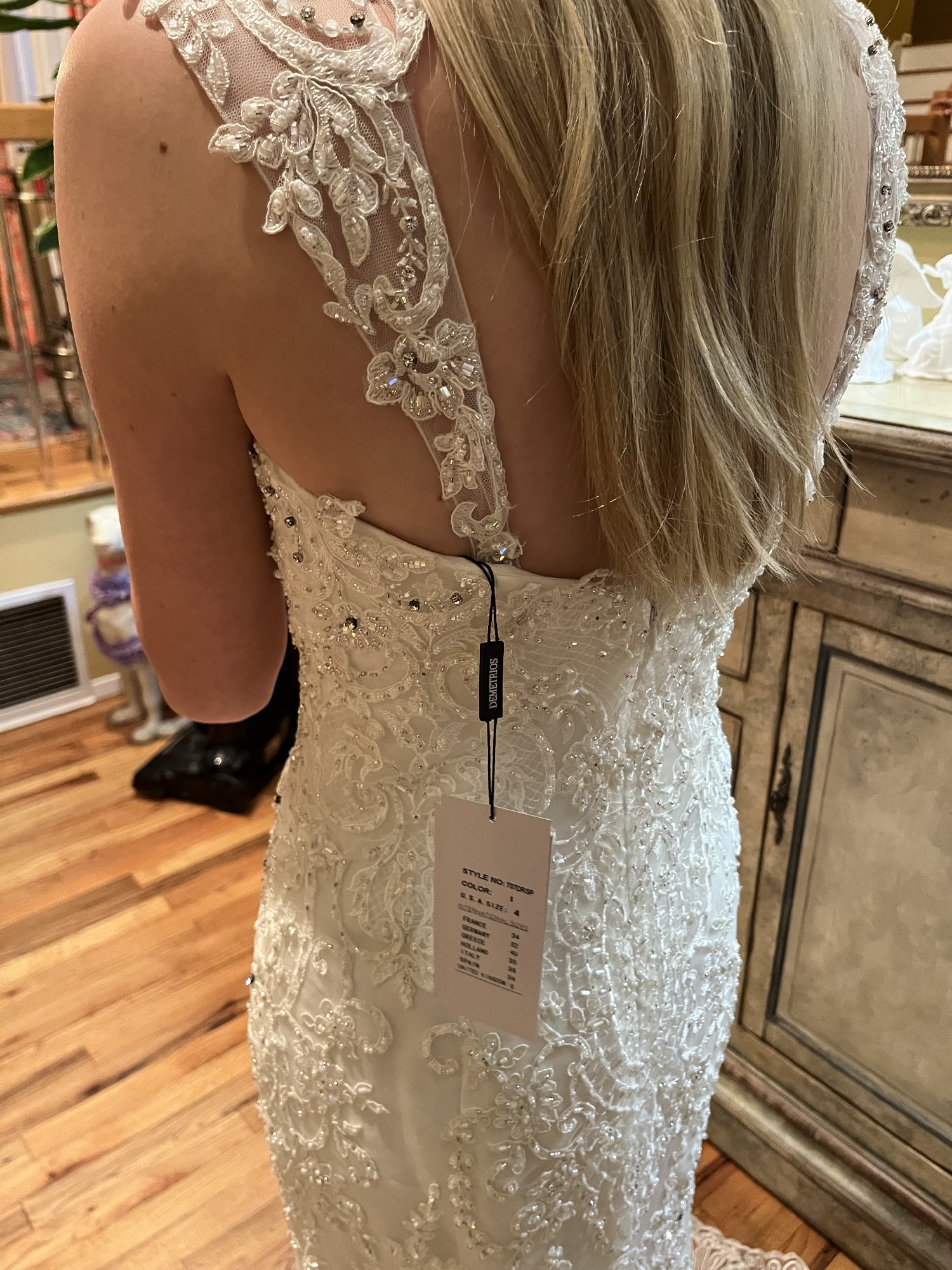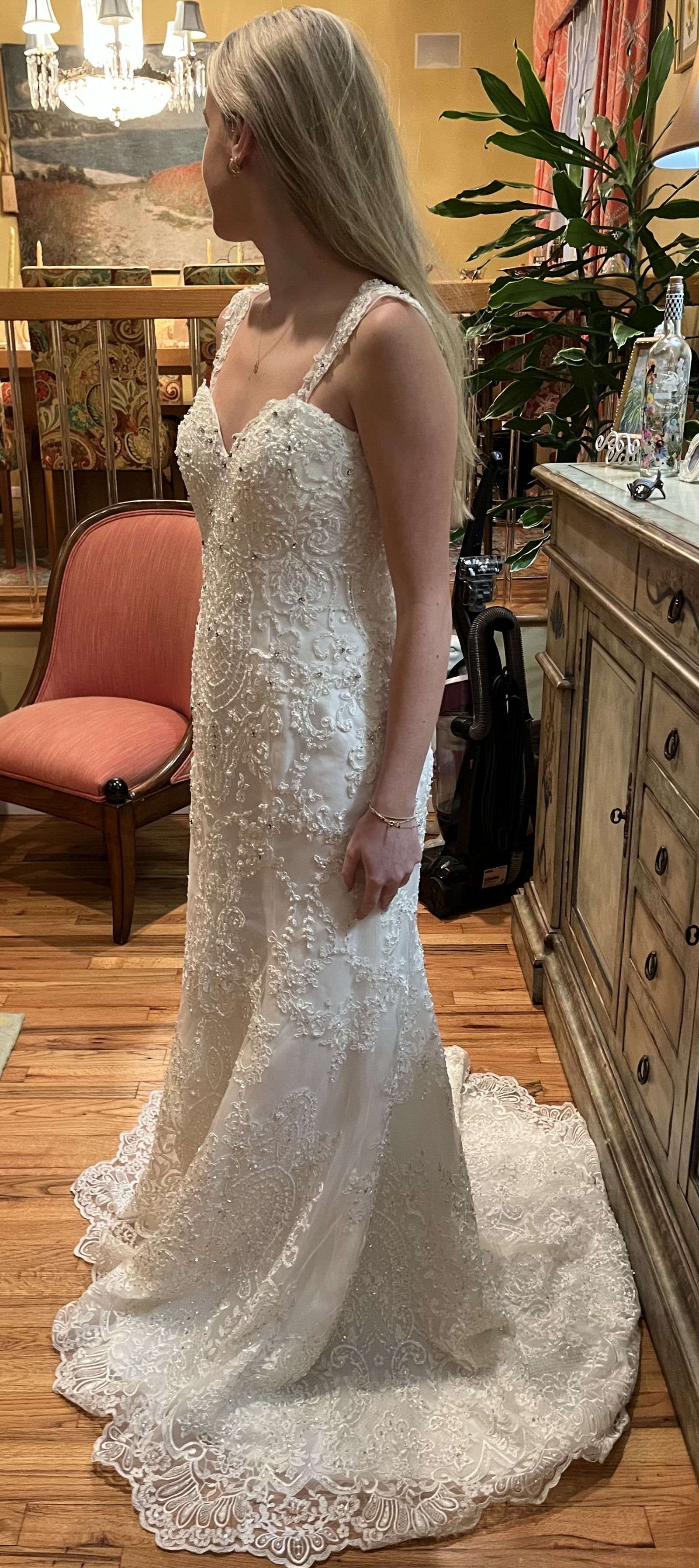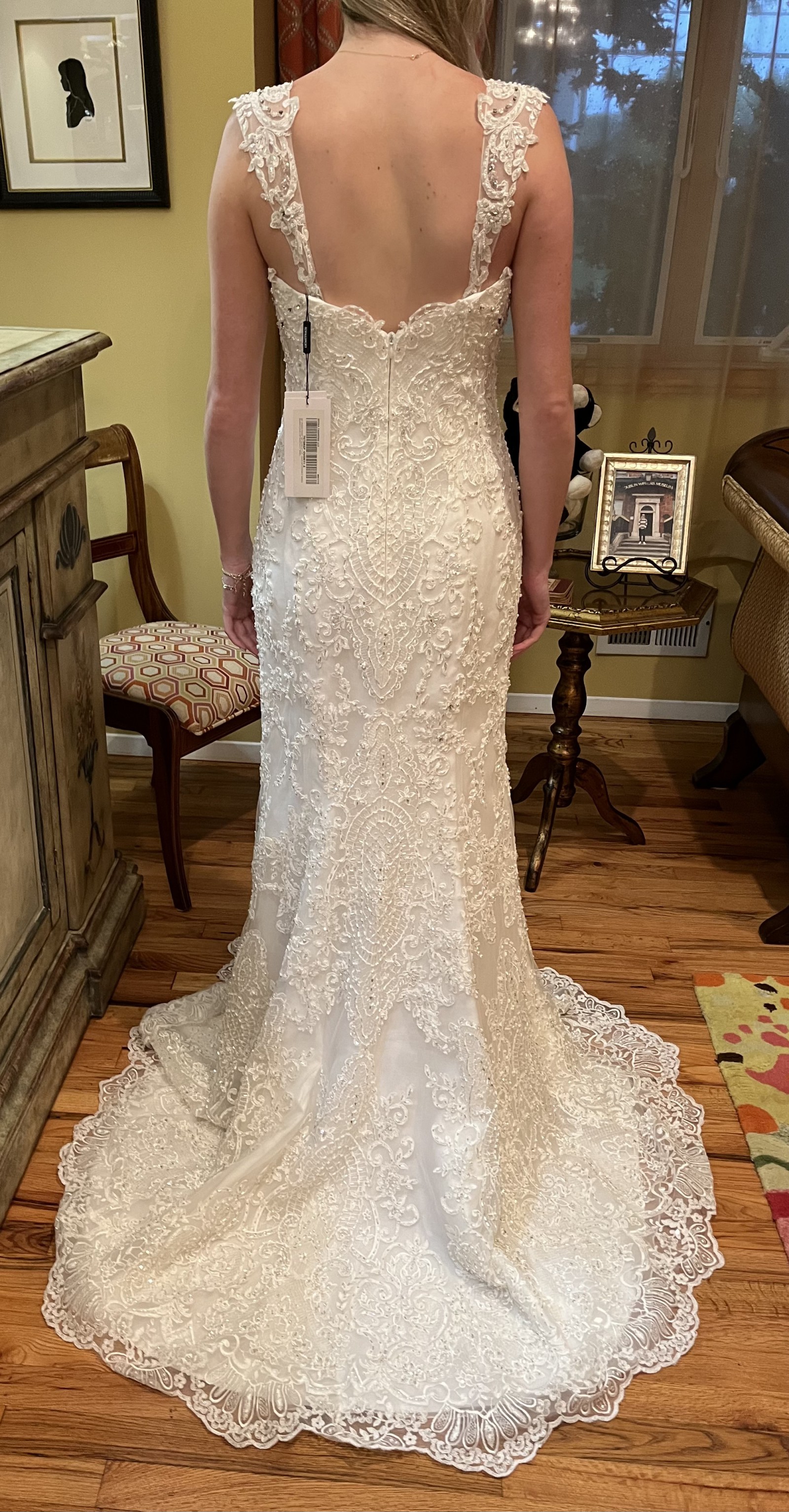 Was purchased to wear as a reception gown post ceremony. Never worn.