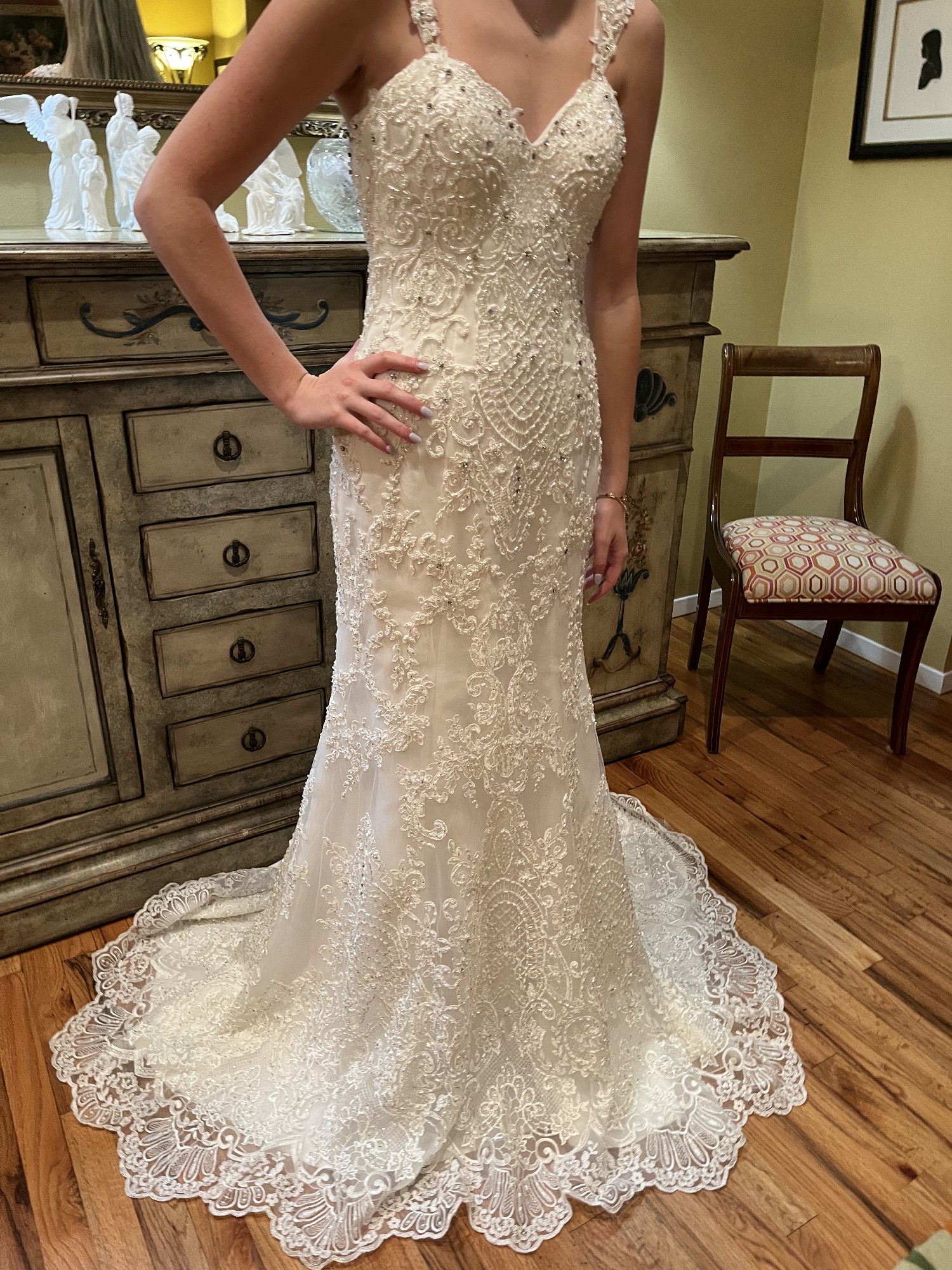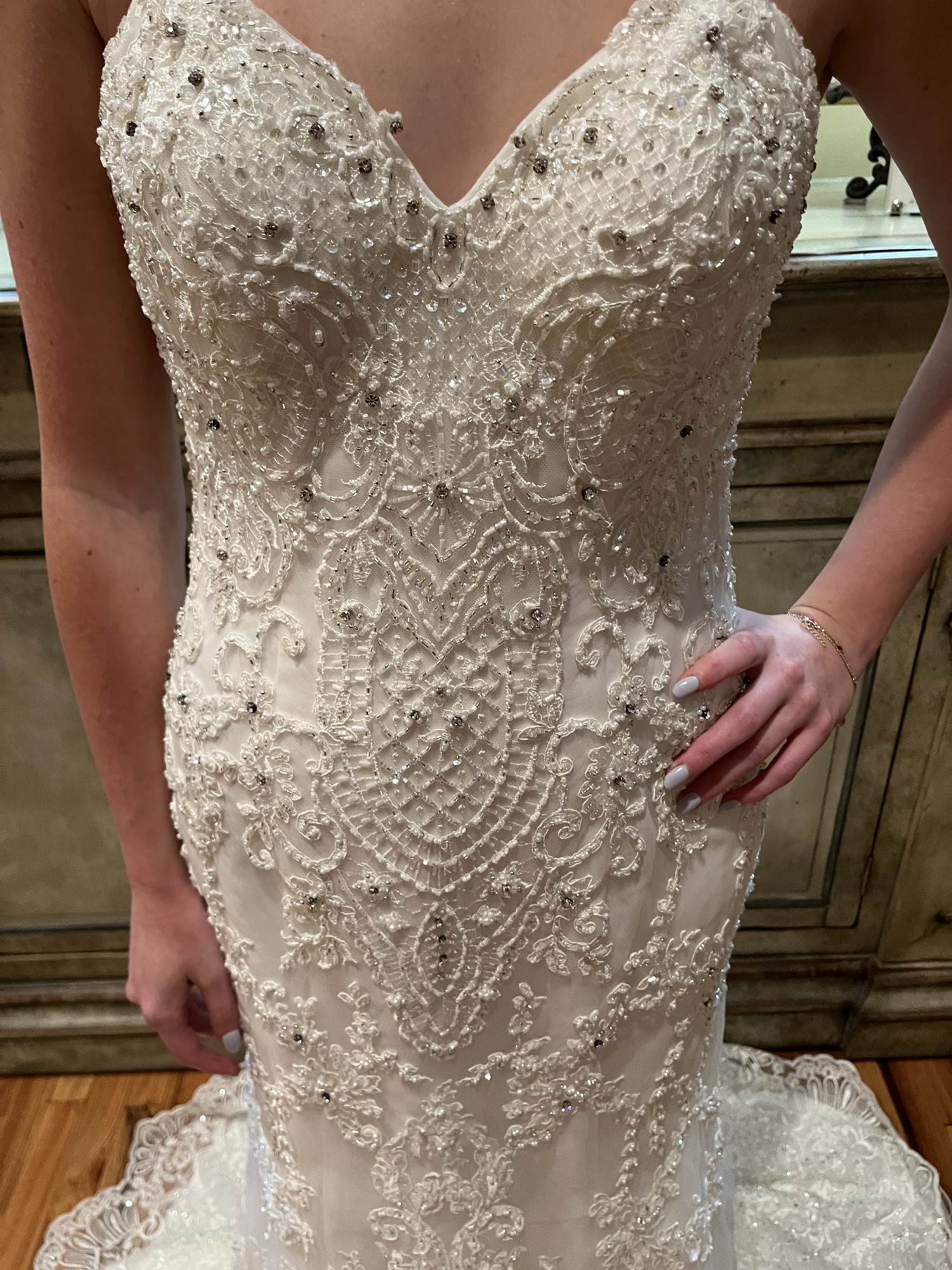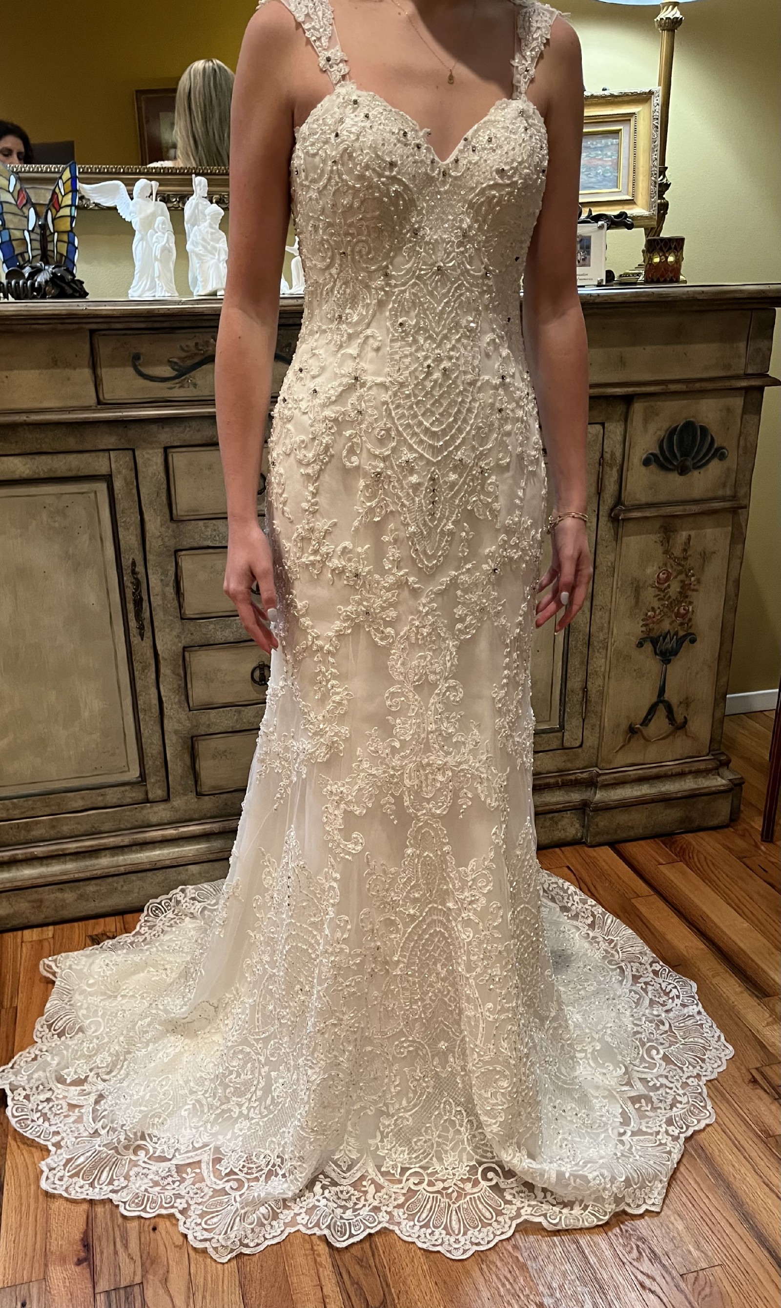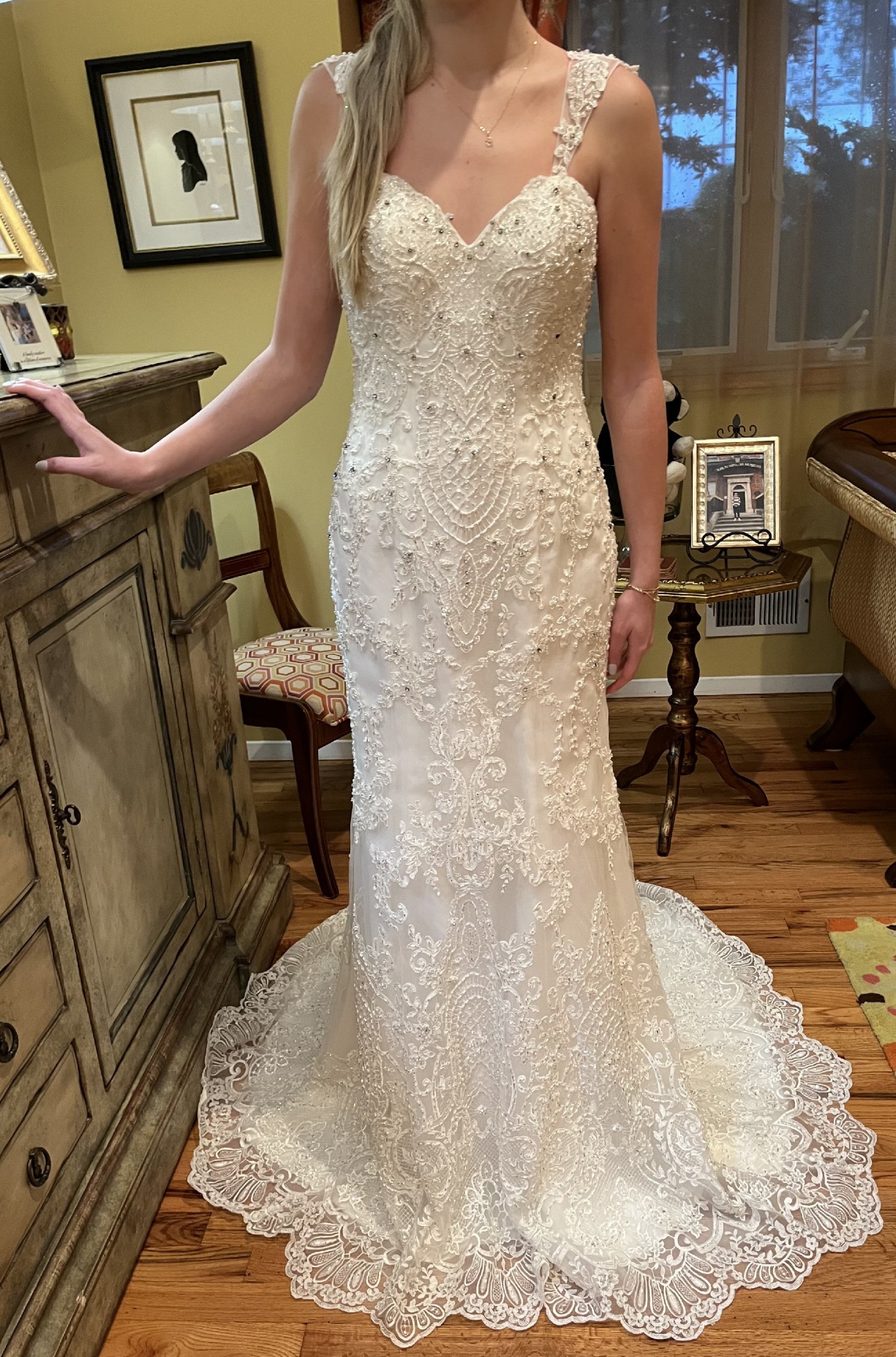 Was purchased to wear as a reception gown post ceremony. Never worn.