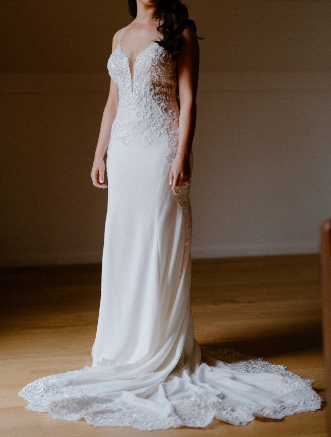 Professionally dry-cleaned and looking brand new. This dress was gorgeous and the detailing is absolutely beautiful.