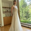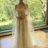 New, never worn Reem Agra embroidered strapless illusion gown with bows.