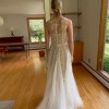 The matching veil is made from the same material as the illusion neckline (simple, no design or beading) and is a simple and elegant compliment to the dress.