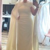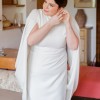 - I had the original design bring up the back 4" so I could wear a bra and shapewear, created ruching across the stomach to the waist to hide a little tummy, pulled the sleeves up since they were a little heavy, and had it hemmed to accommodate my 5'4" height