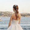 The wedding dress is size 36, an original Georges Hobeika SS23 runway gown. A 3 cm adjustment has been taken in the bust area. In this state, it will comfortably fit an EU 34 body or a slender EU 36. The bride's height is 178 cm, and the dress length is tailored to the ground based on the measurements for 11-point high-heeled shoes. It can be sent with a 3-meter Vakko brand veil adorned with cristal details.