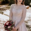 One of the highlights of this dress is its practicality – pockets! Perfect for keeping your written vows close or discreetly holding tissues for those heartfelt moments. The absence of a train means no time wasted bustling after the ceremony, allowing you to move with grace and ease.