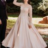 The bottom half of the dress is crafted from glossy satin, exuding a timeless and luxurious feel. The specific color description is "Silver Blush/Nude/Rose Gold" adds a touch of warmth and sophistication.