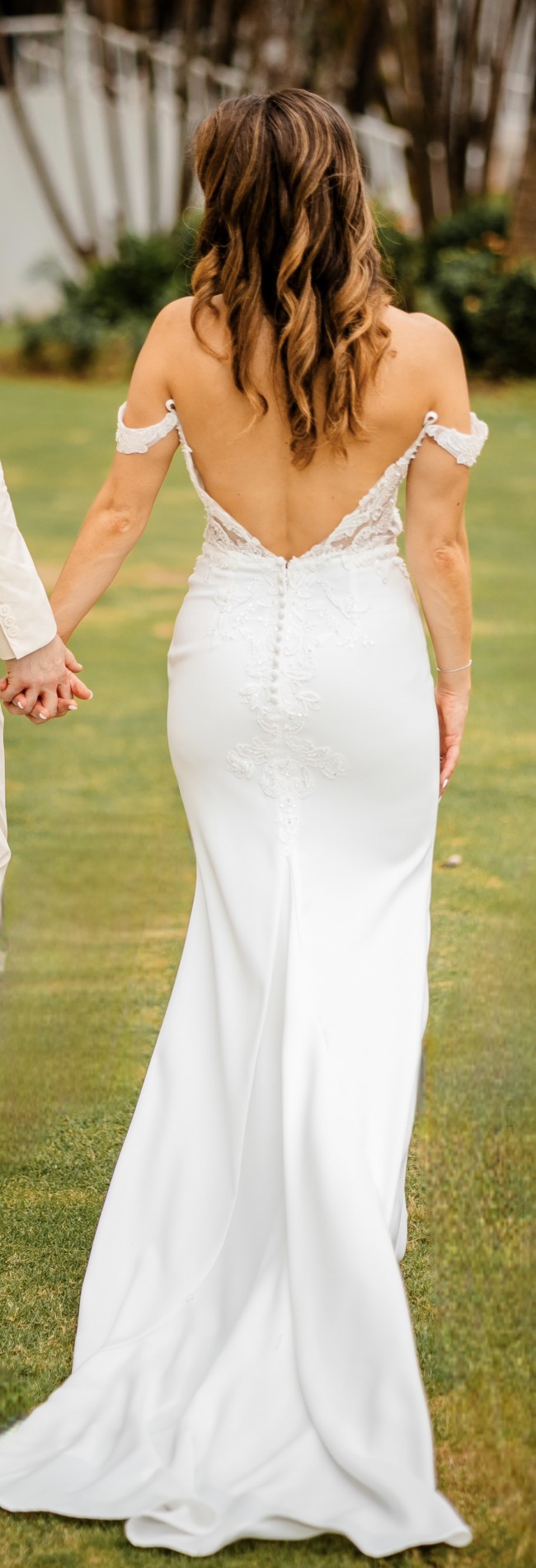 Spaghetti straps with removable off the shoulder lace straps for two different style dresses (ceremony and reception).