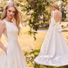 The bateau neckline provides a lovely contrast to the side cut outs and open back on the bodice of this gown. Side pockets add functionality to the classic ball gown silhouette!