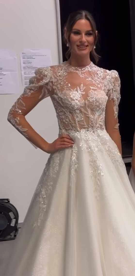 Most beautiful eye-catching Tanya Grig Olivia wedding dress in size EU36 for sale. It is an A-line with 3D flower details and a nice keyhole at the back. It is special / custom-made with a nude corset, (normally it would have been in white and very eye-catching). Never used! Never been altered or seen a seamstress. Only selling because I've fallen for another dress. 3 stones are missing at the top by the keyhole. Asking price 1500 EUR, but I am negotiable. Can be shipped to other countries if the buyer pays postage. The first picture is of the model wearing the dress, as it was used in a bridal fashion show.