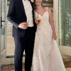Dress was only worn for ceremony, cocktail hour, and first dances. In excellent condition - some minor spots around lining of hem from walking in it, but they should come out very easily. No other noticeable signs it was worn.
