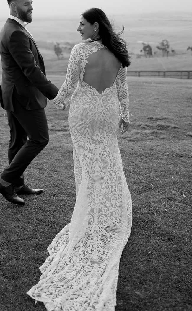 A gorgeous long-sleeved gown with a plunging neckline and modern lace. The dress of my dreams! All other dresses I looked at in this style were x2-x3 the price, I couldn't believe my luck when this became an option with Zavana.