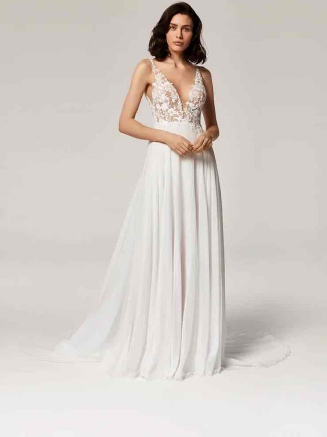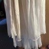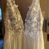 Anna Kara Millo, I’m not sure the original size listed because the tag is cut off, but it fits US street size 4-6. I was told the label size is UK 10 but I can’t 100% confirm. Gorgeous used dress. Has been dry cleaned. This dress isn’t fit to my specs so I don’t know the right chest/waist/hips measurements or if alterations were made, but I’d be happy to take measurements of the dress itself upon request. I purchased this resale but just ended up going with another, but it’s gorgeous. The embroidery is beautiful. Please note the underskirt is a natural beige color, not white like in the model photos.