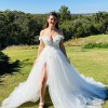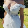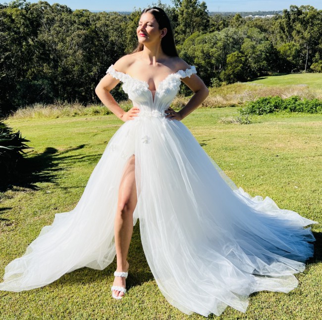 I had this dress completely custom made and created it so that I could have the full skirt during the ceremony and then the short dress for the reception (dancing easily). I've since decided to go with a different dress I fell in love with so this is brand new, literally only worn for the purpose of these photographs. It has a zipper to the base of the corset and then a corset back which gives a little bit of sizing flexibility. The split has lining underneath that has been temporarily pulled back so that in alterations, you can choose to have more or less lining should you wish. The overskirt has two hook and eyes that just clip together simply at the front, over the flowers on the bodice. Each 3D flower was hand stitched and they all have a pearl in the middle. There are a couple layers of tulle in the overskirt as well to give it that full look. I'm a C cup and there are two push up cups already sewn into the bodice, however they could easily be removed if you don't require the extra support. The bodice has transparent style panelling on the sides as well. The dress will come with a custom veil with matching flowers from the dress at the base. The veil does not yet have a comb as it depends how you want to secure your veil on the day. I'm actually unsure exactly what colour it would be classed as but I believe it's in the white to ivory colour palette (I just chose the colour I liked when we custom made it!). There's plenty of room if you are a taller person as there is so much material around the base, or alternatively you can alter it shorter. The short dress goes a little longer at the back but again, this could be cut straight and short if that's not your style. There's plenty that you can do with this dress if you so wish. I welcome any questions, feel free to ask me anything. It's such a stunning dress that is super versatile. The photos also didn't upload with amazing quality so if you'd like more photos, just reach out :)