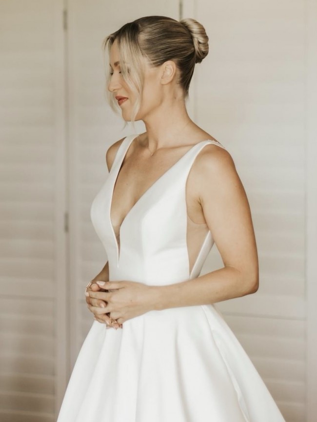 About me: I am a size 8, and 165cm tall. Dress has been altered to fit me but is able to be altered to suit again. I wore a medium heel on the day.