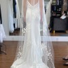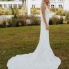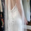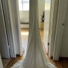 This was my dream wedding dress. Long silhouette, backless and timeless in style. It’s been professionally dry cleaned but has a few light stains on the train.