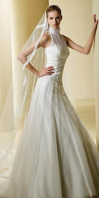 Bought in 2009, but unfortunately due to a delay in wedding, and a baby, I put on too much weight. It was such a stunning dress that I did want to ruin it getting it sized. Would love to see someone wear it in all its glory, as it deserves. Matching full cathedral veil is available.