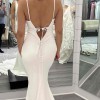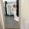 Georgia is classy, sexy and timeless. She embodies everything about MWL. Georgia is made from our popular, buttery, double layer French Crepe and hugs the body in all the right places sculpting a flattering silhouette. A modern twist on our iconic shape, Georgia features a V neckline and plunging low back. Her open back follows a V line and is framed by the most delicate crepe piping and crepe buttons that meet at the top of her godet. Georgia is perfect for the minimal yet glamourous bride looking for an elegant and romantic look on their big day. Never worn or altered, brand new in bag! The dress is stunning, timeless, classy and modern.