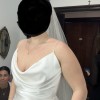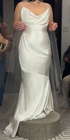 This dress is brand new, unworn, unaltered with designers tags still on it. I ended up going with another dress I found after I had already bought this one. I never got the chance to wear it, and I hope it can go to a bride who will love it as much as I do. It is so gorgeous and sophisticated, beautiful on any body type, and unaltered so you can make it perfect for you!