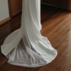 Small tear in train of dress right at the bottom. Will easily be fixed when length of dress altered to your preferred length