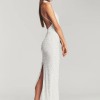Sultry and slinky, the Olivia Dress by Retrofete is a vintage-inspired halter maxi with modern allure. The dress has very detailed hand-sewn crystalline detailing and a head-turning open back. A deep slit up the back makes the Olivia perfect for dancing the night away.