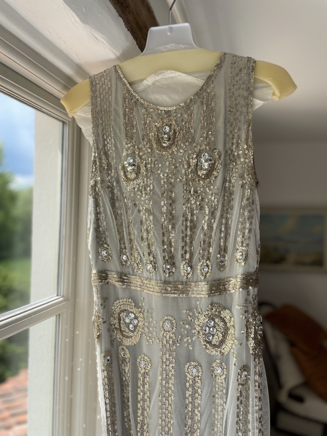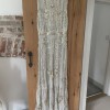The silk lining where it has touched the floor has some marks, mostly on the inside. These don't detract from the beauty of the dress. They could be removed if the dress was hemmed by an inch. I can send plenty of photos if needed, please send me a message and Id be happy to share.