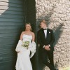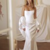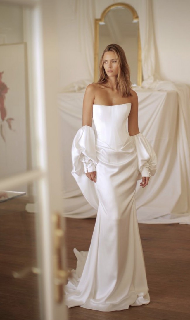 Strapless silk gown with corseted bodice from Lihi Hod. Comes with detachable sleeves. The inside of the dress has an amazing corset that will snatch you in.