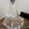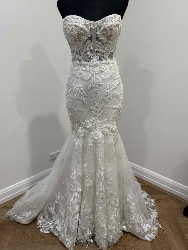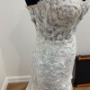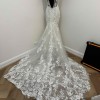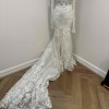 COMES WITH MATCHING SLEEVES & CATHEDRAL VEIL! I had this gorgeous gown made bespoke for cake cutting and first dance. This dress was my second look of 3 on our wedding day so it was only worn for a short while. This dress is so glamorous. It has so much sparkle with a glitter underlay and hand beading on the upper bodice, with a few 3D flower details and pearls. I'm 5'2" and wore 4inch/100mm heels on the day and it was ankle length on me. I'm a true AU size 6, with a 32D bust. The dress has a hidden zip up to the lower back with illusion buttons. The rest of the back is sheer bodice and button up with two reinforced hooks to mitigate any tension on the button loops. ** the dress DOES fully button up on the body, my mannequin is just a little bit bigger size than my body is.
