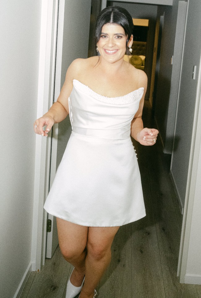 Perfect dress to dance the night away, so fun to wear! The pearl detailing is so beautiful, makes the perfect reception dress or dress for an engagement party!
