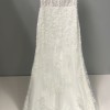 The dress is a never worn lace and liberty fit and flare dress with subtle sparkle and scalloped train. The dress zips up and has buttons starting at the top of the illusion back of the dress to the bottom of the train. It comes with a very sparkly over skirt (with a subtle light blush tone). The overskirt turns the fit n flare to a A line dress. The over skirt attaches at the waist, along with detachable sparkle sleeves (with same lace as dress- they’re not shown in the picture). It has two layers, one light subtle blush and the top layer is a sparkle tulle.