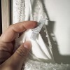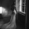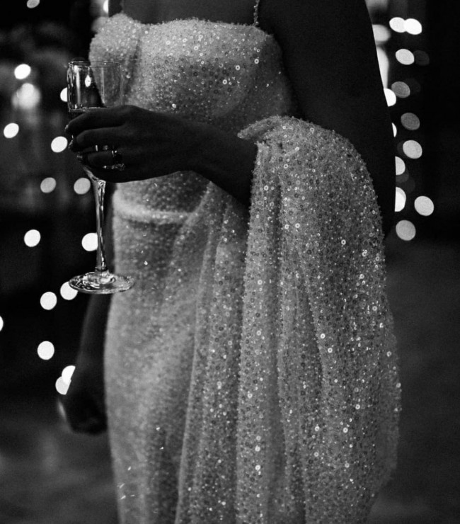 Lola, the sexiest wedding dress of all time. Handmade with beaded sparkle lace with a structured boned corset bodice. Lola features thin spaghetti hand-beaded straps with a french jersey stretch crepe underlay, allowing our MWL girls to dance and move with comfort.