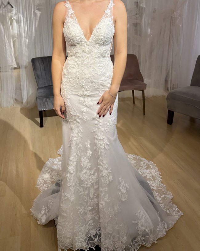 Never been worn. Changed mind on dress, never been altered, new with tags. Size 8 essence of Australia fitted wedding dress. Lace, train, plunge neckline, and open back! Originally paid $2,500. $2,000 OBO.