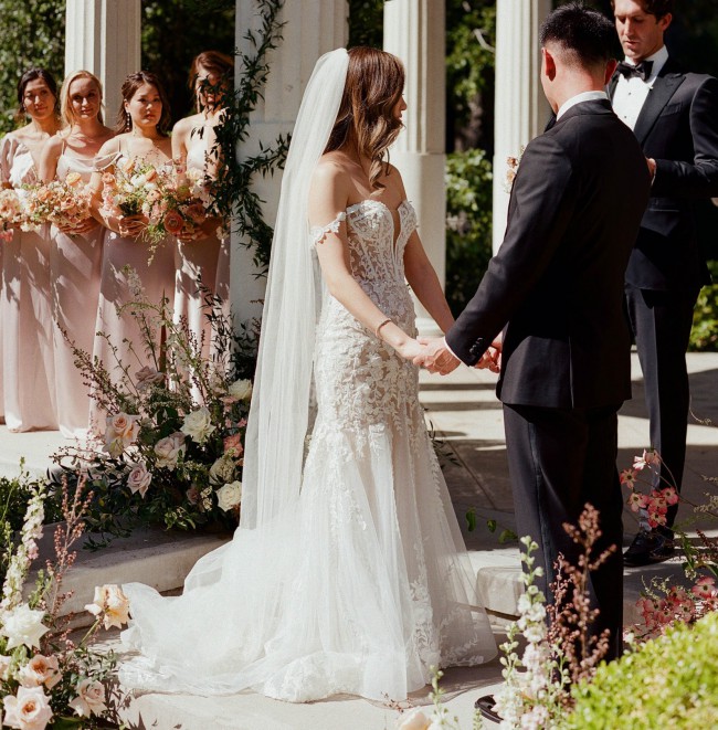 - Added 7 bustles and also hemmed the dress - I am 5 ft 7.5inches and wore 1 inch heels