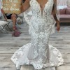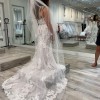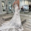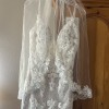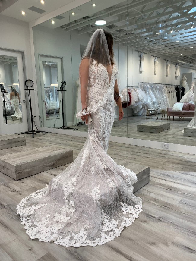 Maggie Sottero Tuscany Lynette gown. Lace sheath with sheer bodice. Ivory lace over Misty Mauve gown. Appliqué with sequins & pearls. Purchased in 2020 during Covid. Couple ended up eloping. Neither dress nor veil ever worn; never altered.