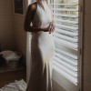 Katherine Tash ‘Bella’ sheath high neck silk wedding dress.