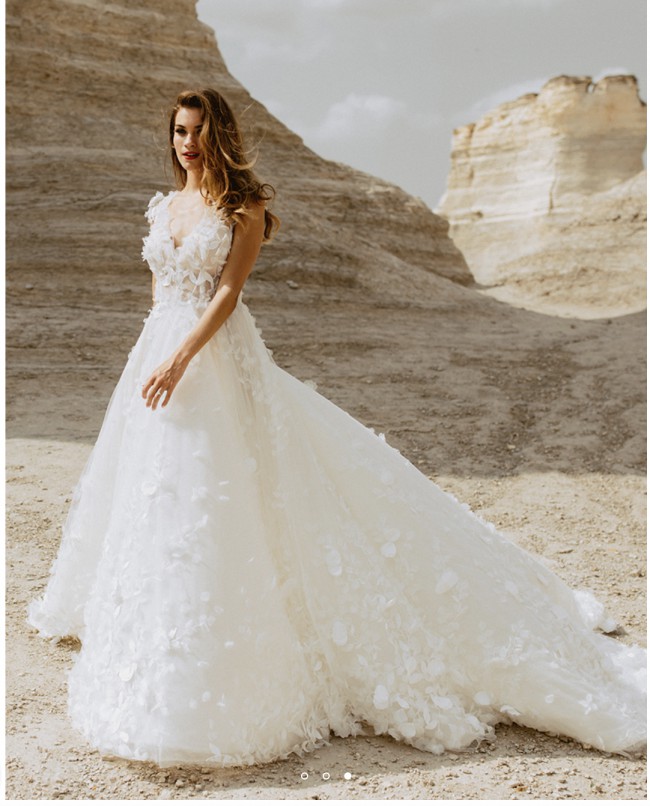 A couture gown for the modern garden goddess, Style LE1184 from Martina Liana Luxe is the definition of elegance and extravagance. This ladylike A-line silhouette is brought to life with classic cap sleeves, a subtle V-neckline, fluttering 3D florets and luxurious leaf detailing. Sheer illusion tulle and layers of lovely lace add eye-catching texture and dimension to the luxe wedding dress, while the circle keyhole back leads to a truly romantic ending: a sweet flowing skirt that creates frothy movement as you walk down the aisle toward your true love.