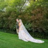 This listing includes Cora Meadow Veil and Sleeves. Dress size is 8/10 with D cup bust.