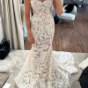 Sadly I didn’t get a chance to wear this dress as the brand had some issues and it did not arrive on time so it is brand new with tags. It has also not had any alterations so the dress is ready for alterations to fit the next person (the length is very long) I also had sleeves custom made to match the dress. The lace of this dress is so unique and the fit is incredible. I have lots more videos and pictures if needed.