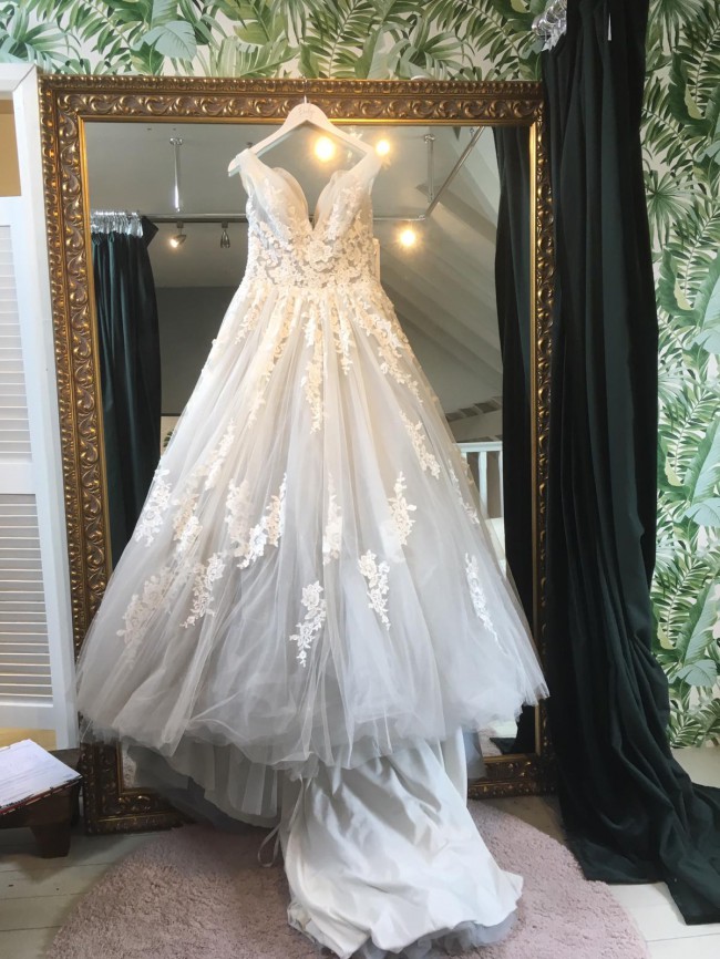 Brought before Covid but wedding never went ahead. This has not been worn apart from being a sample from a wedding shop in Debby Dale, Yorkshire.