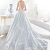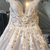 This is a beautiful dress that I completely fell in love with, it’s white but with a blue tint from the under layers and bring a uniqueness to the dress with beautiful embellishments on the bodice flowing down into the skirt of the dress. The dress has a shimmer in the light and flows beautifully when on. The dress also has a beautiful small train that glides as you walk.