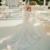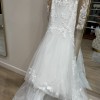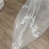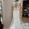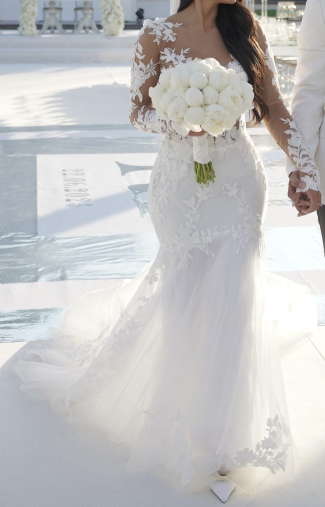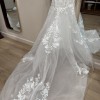 I bought the dress from Kleinfeld bridal in New york and the designer is Panina Tornai and custom made . The dress is backless and it has ribbon in the back to tight the dress. You can put the ribbon outside or inside of the dress. (you can hide the ribbon) . The fabric is lace with 3D flowers. I sell it with the veil. The veil is lace and nothing on it. (No flower) This dress is made with love and I wish you enjoy it on your big day xoxo
