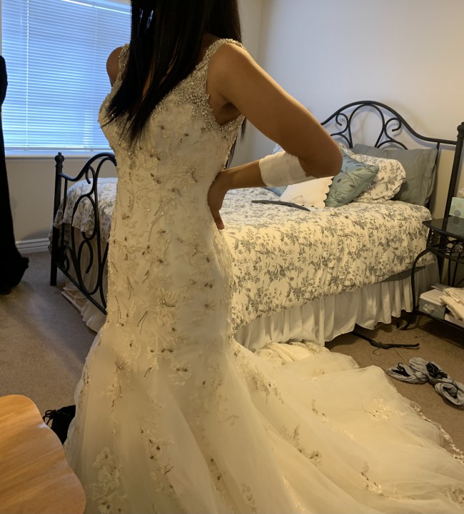 This is an exquisite, hand-beaded, custom design. So much more beautiful in person.